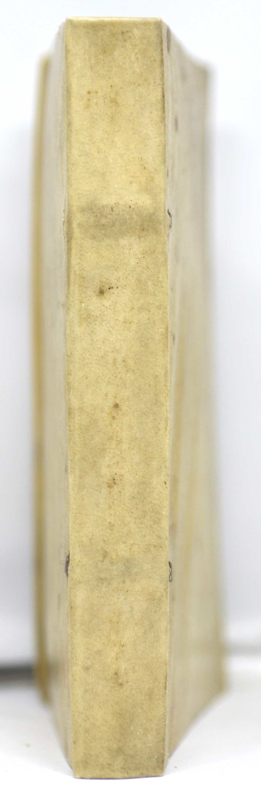 Reliure d’époque en plein vélin blanc, dos à deux petits nerfs apparents.