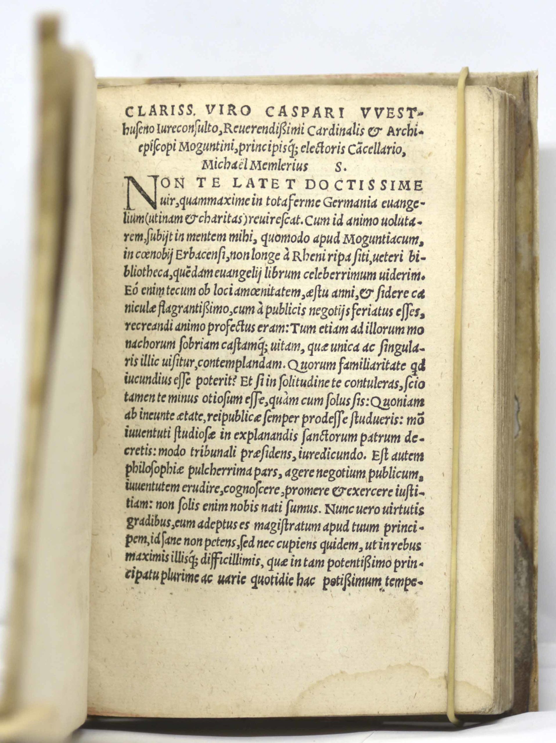 Il est à l’origine de la Concorde, le procédé qui consiste à reproduire simultanément les quatre textes dans des colonnes, en établissant des correspondances entre eux, une manière qui transparait aussi dans le présent ouvrage. Ce dernier a été imprimé par Eucharius Cervicornus (14 ?-15 ?), actif à Cologne entre 1516 et 1547, mais aussi à Marbourg, dans la Hesse, à partir de 1535. La production de sa période colonaise est particulièrement réputée pour son soin et sa précision. (Réf. Graesse, p. 105 ; Neue Deutsche Biographie 3, 1957, p. 184).