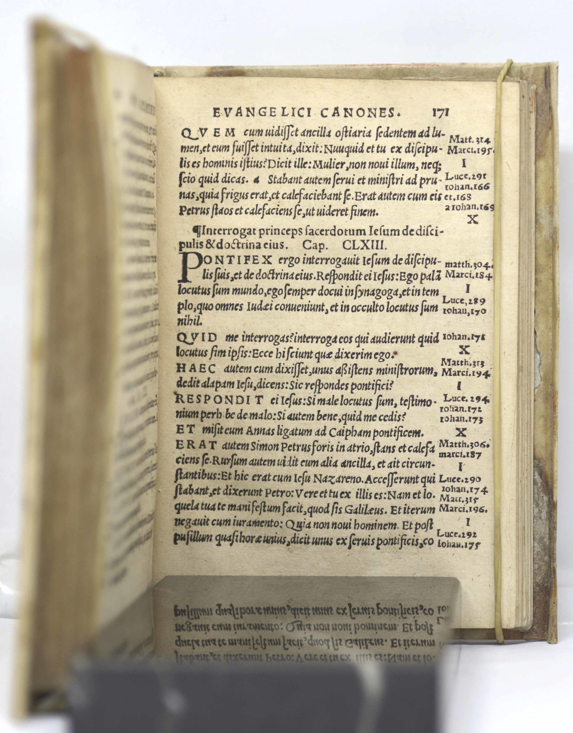 Ce livre, qui a été imprimé une première fois à Mayence par Johann Schöffer en 1524, réunit la compilation des quatre Évangiles canoniques écrite par le moine Ammonius d’Alexandrie et traduite par l’évêque de Capoue, saint Victor (?-554).