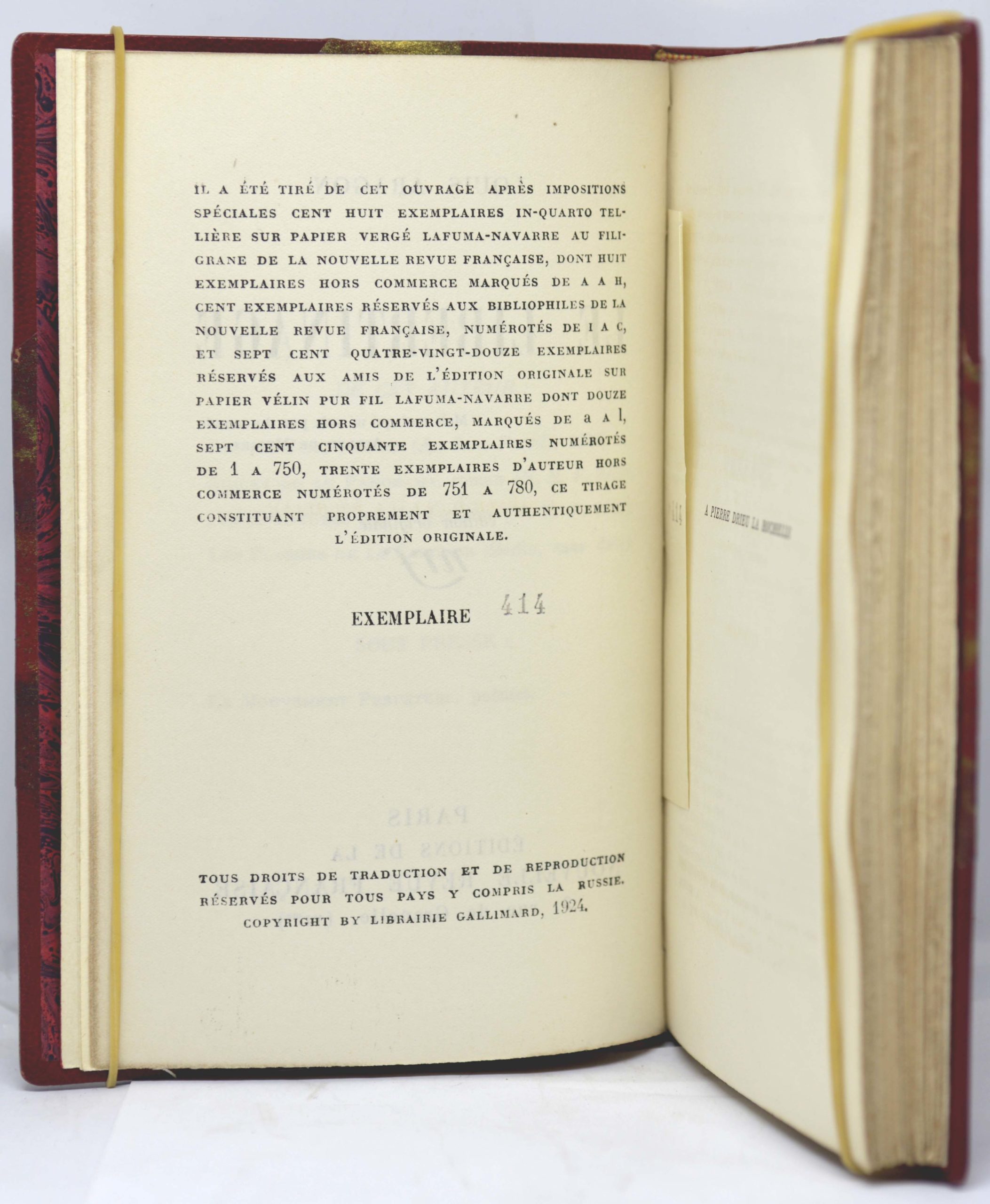 À Paris, chez Gallimard, NRF, 1924. Un volume, 12,5 x 19 cm, 254 pp.