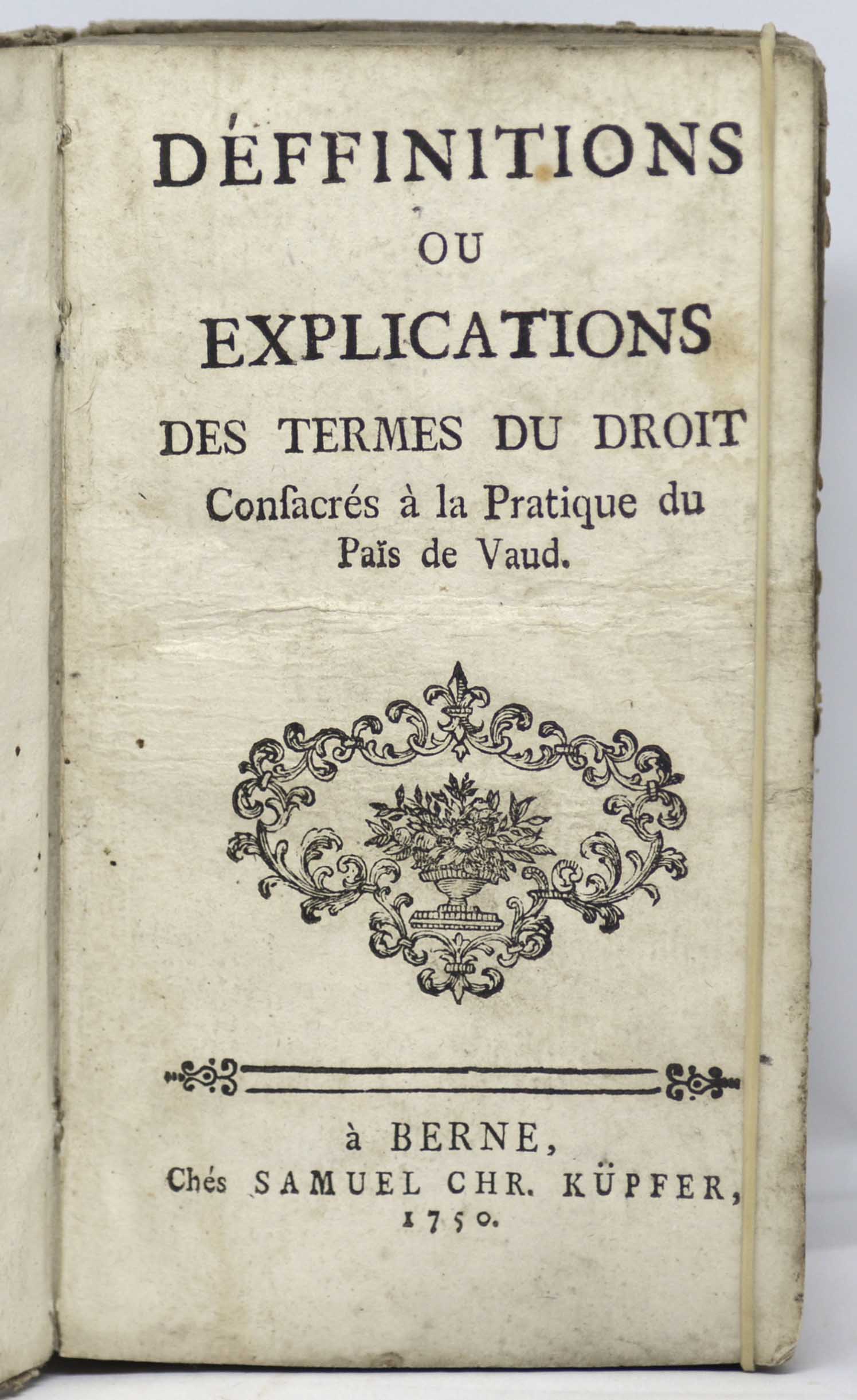 ![[BOYVE], Déffinitions ou explications des termes du droit Consacrés à la Pratique du Païs de Vaud, 1750](https://librairieunivers.ch/wp-content/uploads/2026/01/9439a-1.jpg)