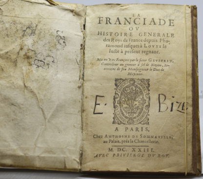 Unique édition de l’ouvrage, dédié à Louis XIII, dû à un certain Gueuffrin, dont on ne sait rien à part qu’il fut « contrôleur du grenier à sel de Noyon, & ci-devant secrétaire du feu duc de Mayenne ».