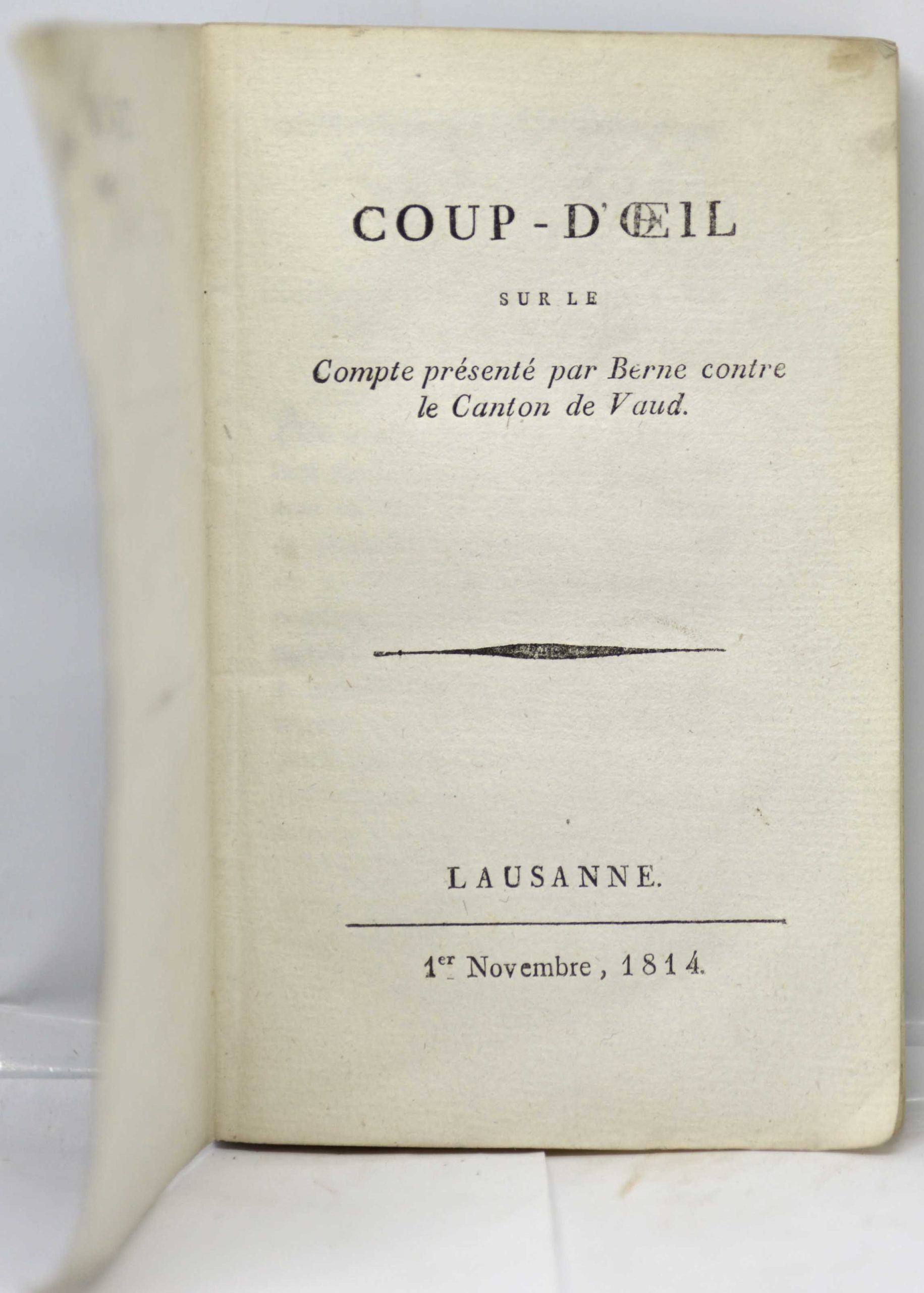 ![[SOULIER], Coup d'oeil présenté sur le compte présenté par Berne contre le Canton de Vaud. 1814 – Image 2](https://librairieunivers.ch/wp-content/uploads/2026/01/9422-scaled.jpg)